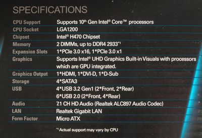 - Сокет: LGA 1200; чипсет: Intel H470